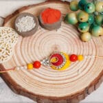 Send a Beautiful Pearls Traditional Rakhi With Mauli Thread to your brother with a heartfelt personal message. To make it more special we are giving exclusive free gifts like greeting Card, Roli-Chawal, chocolate and Bhgwan Rakhi along with this Rakhi. To make him feel special, you can customize your Rakhi combo with our add-on products and let him know how blessed you are to have him into your life.