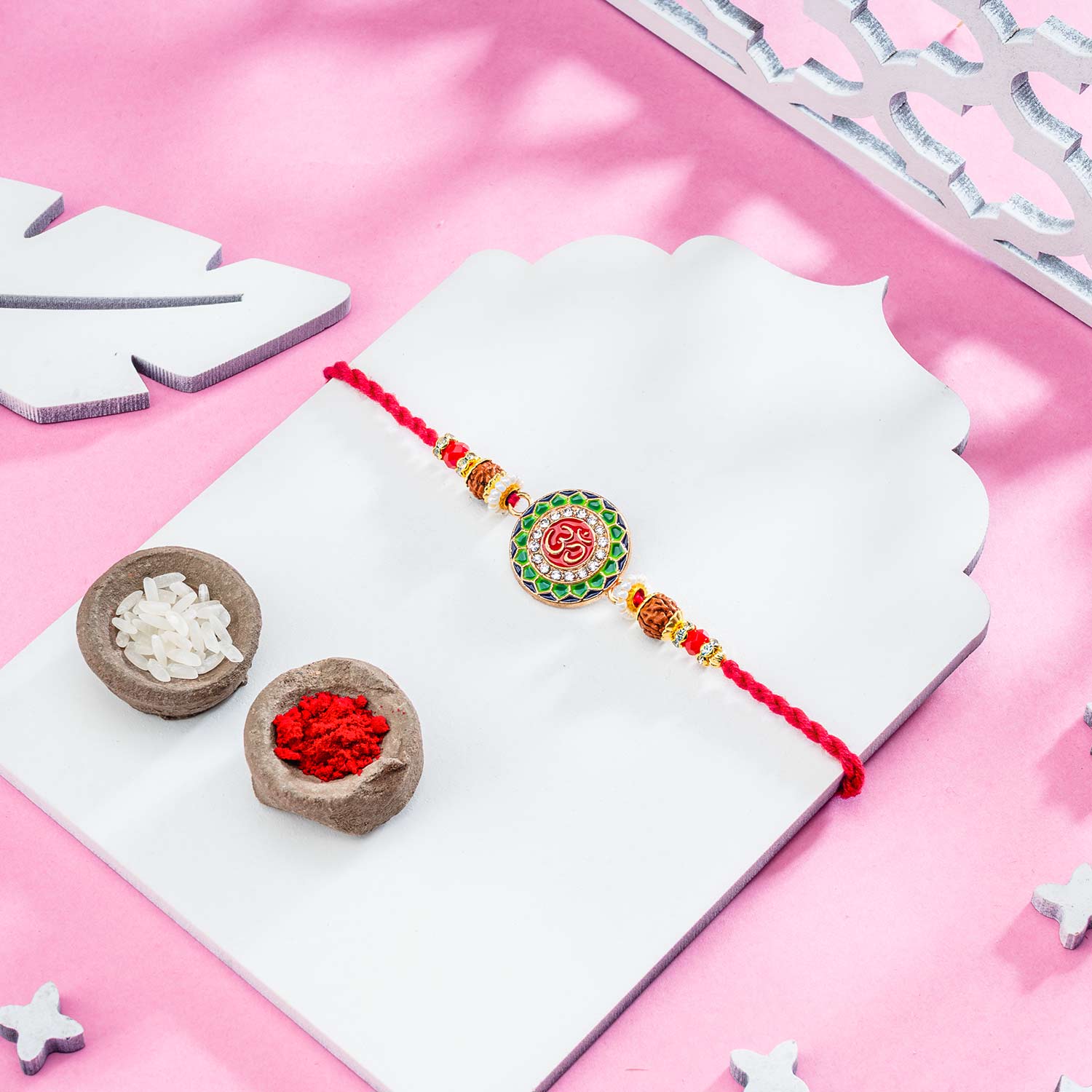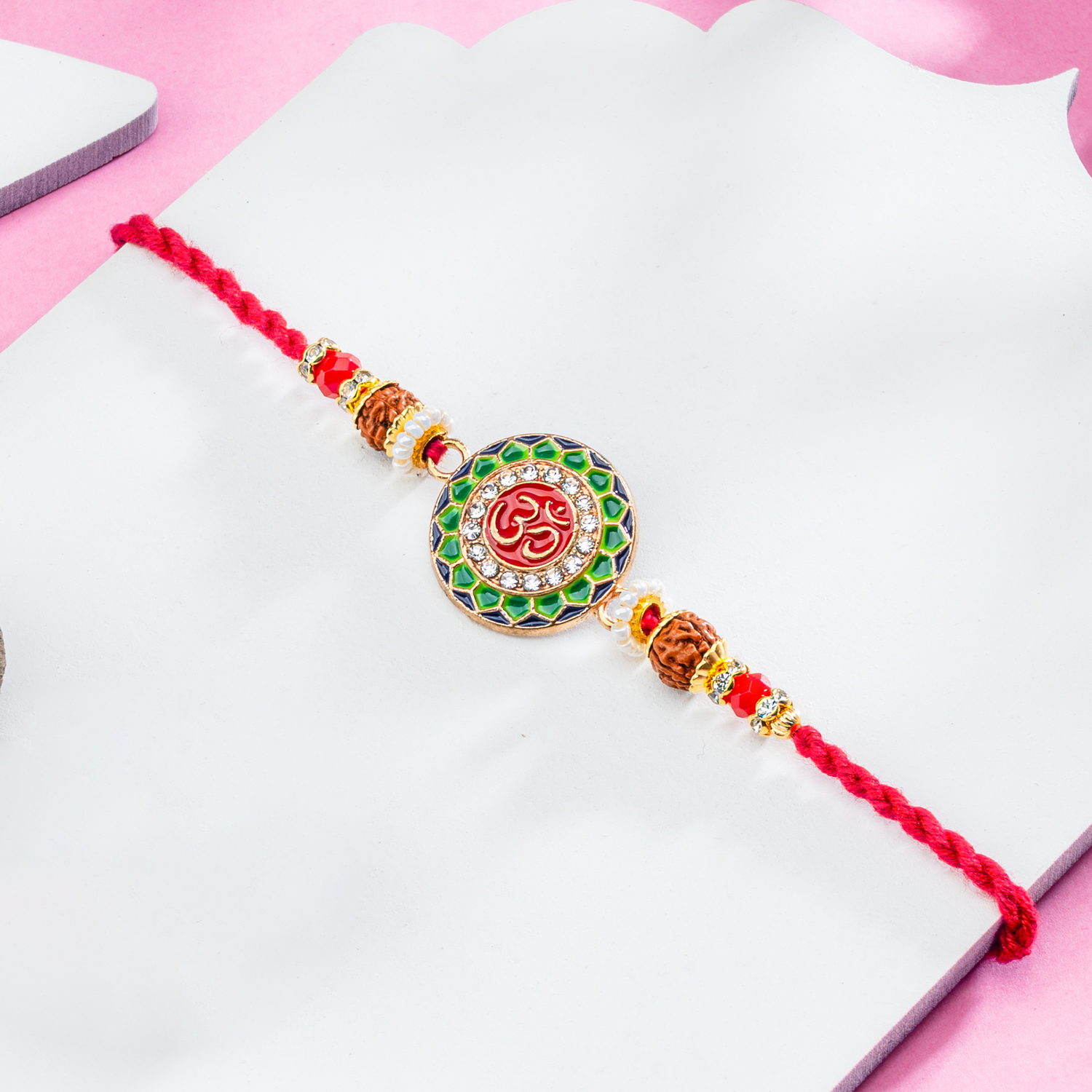 Send a Divine Om Chakra Rakhi with Rudraksh to your brother with a heartfelt personal message. To make it more special we are giving exclusive free gifts like greeting Card, chocolate and Bhgwan Rakhi along with this Rakhi. To make him feel special, you can customize your Rakhi combo with our add-on products and let him know how blessed you are to have him into your life.