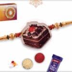 Send a Special Cake Wooden Rakhi to your brother with a heartfelt personal message. To make it more special we are giving exclusive free gifts like greeting Card, Roli-Chawal, chocolate and Bhgwan Rakhi along with this Rakhi. To make him feel special, you can customize your Rakhi combo with our add-on products and let him know how blessed you are to have him into your life.