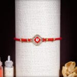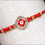 Send a Delicate Red Evil Eye Rakhi to your brother with a heartfelt personal message. To make it more special we are giving exclusive free gifts like greeting Card, Roli-Chawal, chocolate and Bhgwan Rakhi along with this Rakhi. To make him feel special, you can customize your Rakhi combo with our add-on products and let him know how blessed you are to have him into your life.