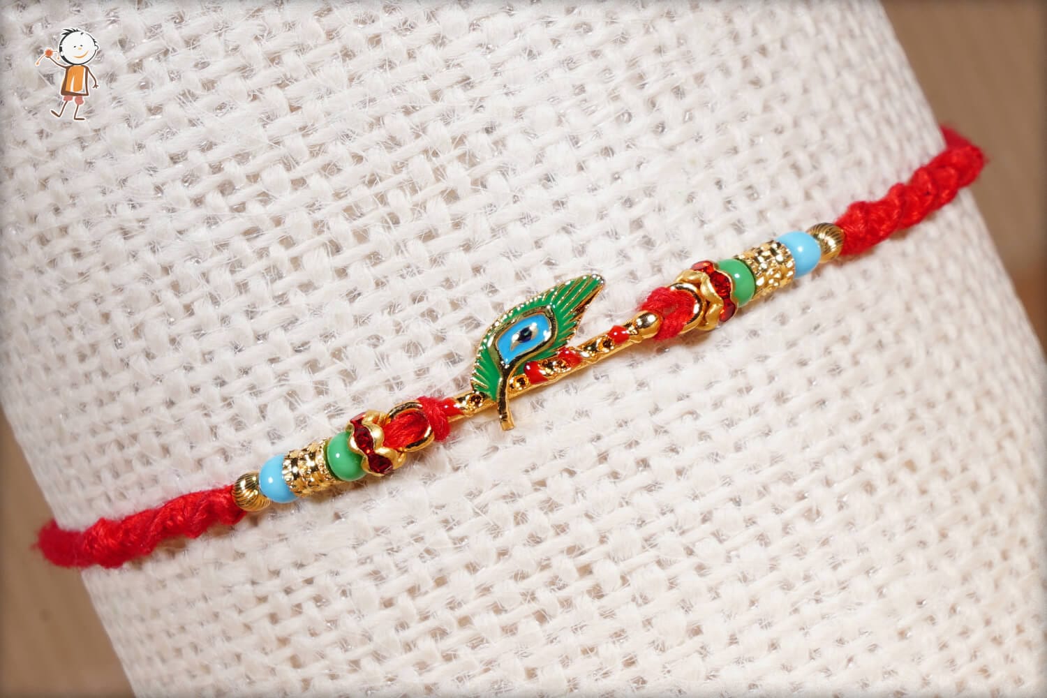 Send a Elegant Flute-Mor Pankh Rakhi to your brother with a heartfelt personal message. To make it more special we are giving exclusive free gifts like greeting Card, Roli-Chawal, chocolate and Bhgwan Rakhi along with this Rakhi. To make him feel special, you can customize your Rakhi combo with our add-on products and let him know how blessed you are to have him into your life.