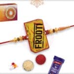 Send a Special Frooti Wooden Rakhi to your brother with a heartfelt personal message. To make it more special we are giving exclusive free gifts like greeting Card, Roli-Chawal, chocolate and Bhgwan Rakhi along with this Rakhi. To make him feel special, you can customize your Rakhi combo with our add-on products and let him know how blessed you are to have him into your life.