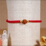 Send a Handcrafted Single Rudraksh Rakhi to your brother with a heartfelt personal message. To make it more special we are giving exclusive free gifts like greeting Card, Roli-Chawal, chocolate and Bhgwan Rakhi along with this Rakhi. To make him feel special, you can customize your Rakhi combo with our add-on products and let him know how blessed you are to have him into your life.