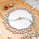 Send a Handcrafted Turquoise Rakhi to your brother with a heartfelt personal message. To make it more special we are giving exclusive free gifts like greeting Card, chocolate and Bhgwan Rakhi along with this Rakhi. To make him feel special, you can customize your Rakhi combo with our add-on products and let him know how blessed you are to have him into your life.