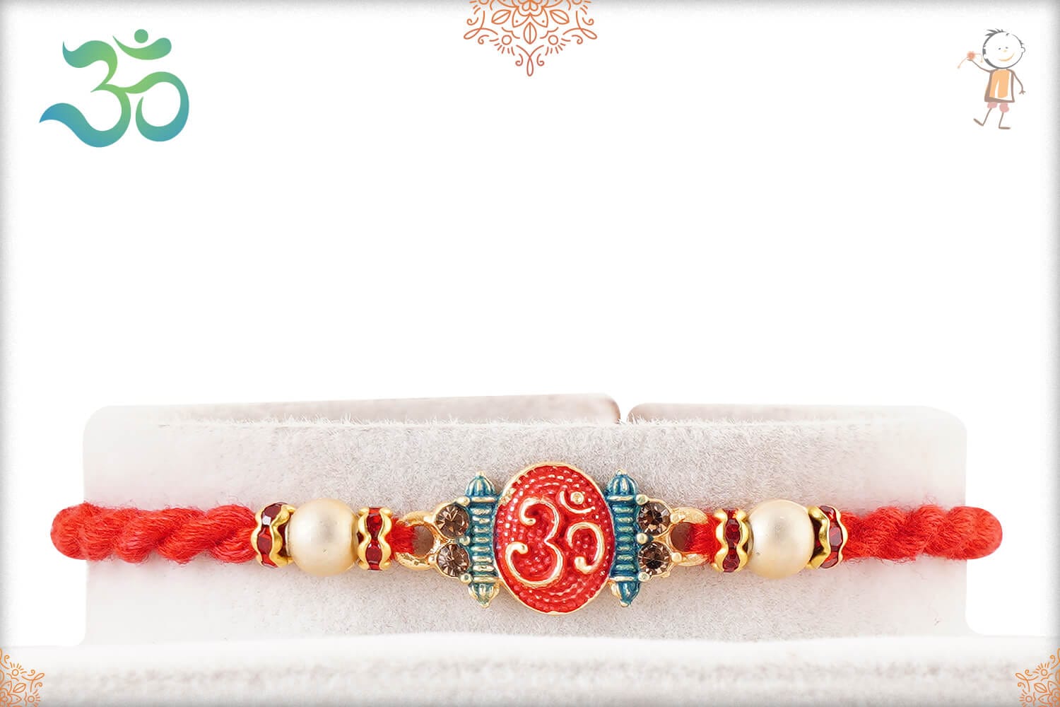 Meenakari OM with Peacock Feather Rakhi