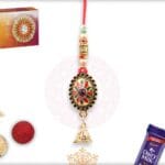 • Free Goodies: Includes Greeting Card, Roli-Chawal (India Only), Chocolate, and a Bhagwan Rakhi for spiritual blessings.