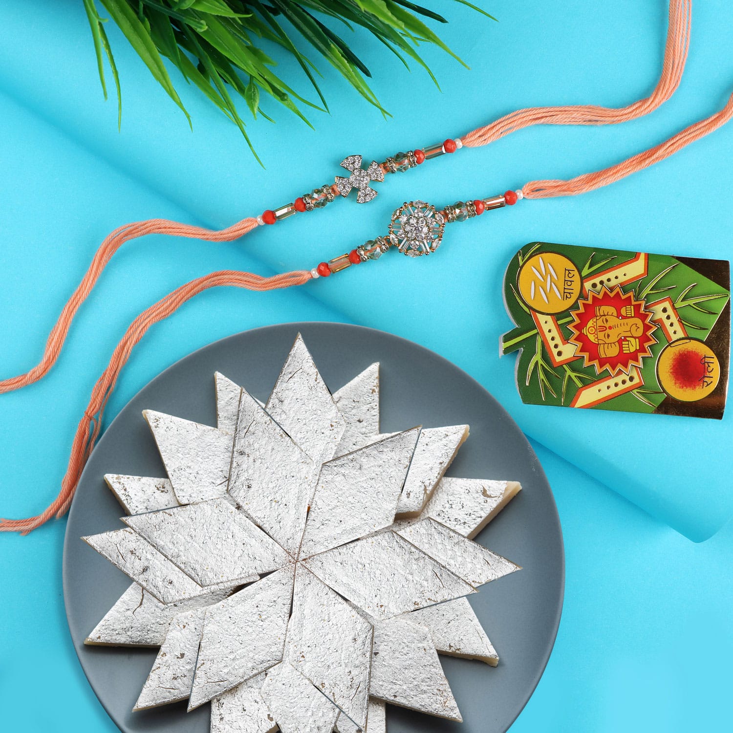 2 AMERICAN DIAMOND PREMIUM RAKHIS 1 HALDIRAM KAJU KATLI 300 GM 1 RAKHSHA BANDHAN WISH CARD 1 SET OF COMPLIMENTARY ROLI CHAVAL (TILAK) Important Information: This Product is only for shipping anywhere in the Europe. The user should carefully read the description of gifts, shipping declaration, and destination information before placing the order. The Product shown in the Image may vary in shape or design as per the availability. Upon receiving the edibles, immediately refrigerate them. We ship this item from London by using Royal mail Post or local Courier, Tracking number will be available. Orders received after 2:00 p.m. (UK TIME) will ship the next working day or later if things out of control. Orders received after 2:00 p.m. Friday or orders received over the weekend are processed on Monday (Unless a public holiday coincides) and a regular delivery schedule will apply. If the Recipient is not at home to receive the product, Postman/courier man may choose to leave the product at the post box, door, or leave a calling card to contact the courier company and arrange re-delivery or pickup. We are unable to call the courier company on behalf of the recipient. We use highly reputable Third party courier companies and will make every effort to deliver on time. however, occasionally delays are possible which is out of our control. We do not accept responsibility for Third party Post/Courier delays lost or damaged and the delivery charges or the products are non-refundable, even thought we have offer Free shipping. All charges have included in the final price. Please refer to our Terms & Conditions for more information.