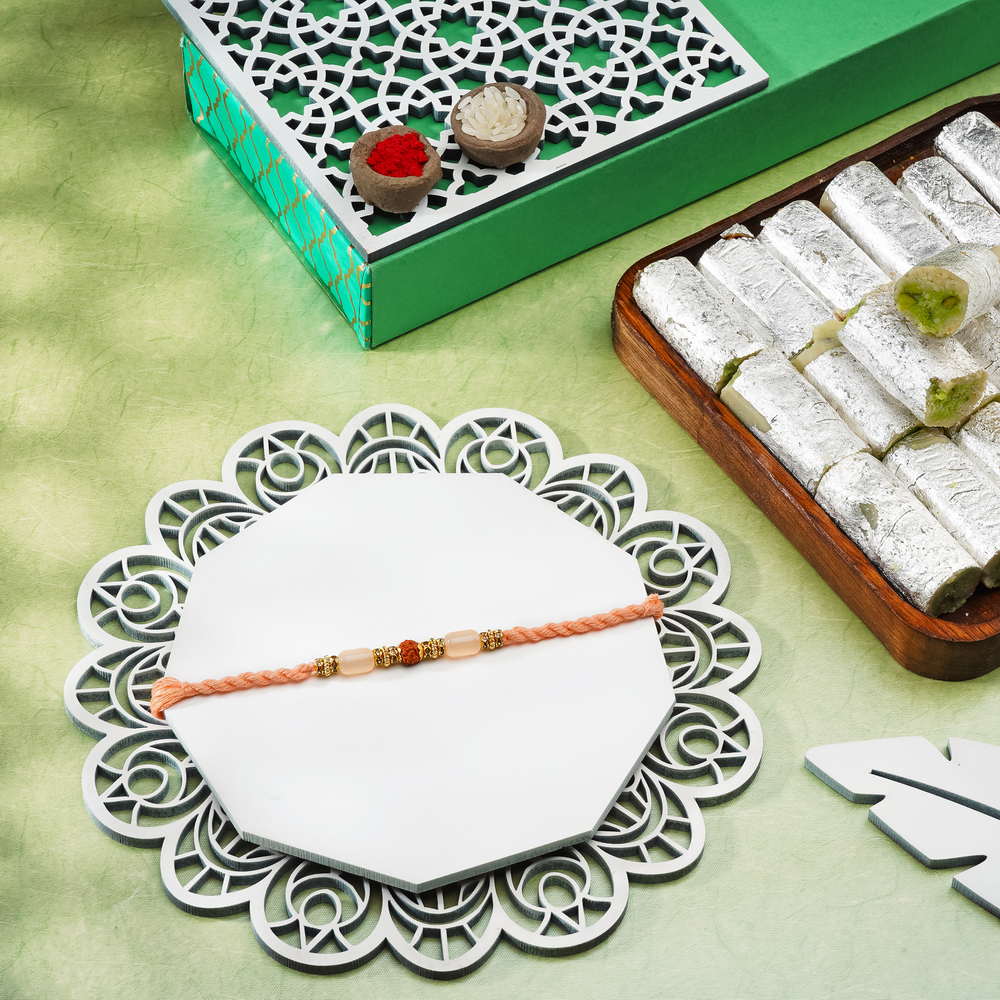 Send a Rakhi with Mix Dryfruit bites (200gm) to your brother with a heartfelt personal message. To make it more special we are giving exclusive free gifts like greeting Card, chocolate and Bhgwan Rakhi along with this Rakhi. To make him feel special, you can customize your Rakhi combo with our add-on products and let him know how blessed you are to have him into your life.