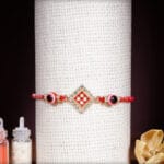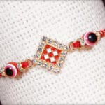Send a Red Evil Eye Diamond Rakhi to your brother with a heartfelt personal message. To make it more special we are giving exclusive free gifts like greeting Card, Roli-Chawal, chocolate and Bhgwan Rakhi along with this Rakhi. To make him feel special, you can customize your Rakhi combo with our add-on products and let him know how blessed you are to have him into your life.