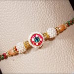 Send a Royal Pearl Rakhi to your brother with a heartfelt personal message. To make it more special we are giving exclusive free gifts like greeting Card, Roli-Chawal, chocolate and Bhgwan Rakhi along with this Rakhi. To make him feel special, you can customize your Rakhi combo with our add-on products and let him know how blessed you are to have him into your life.