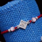 Silver Diamond Ganesh Rakhi with Designer Beads