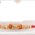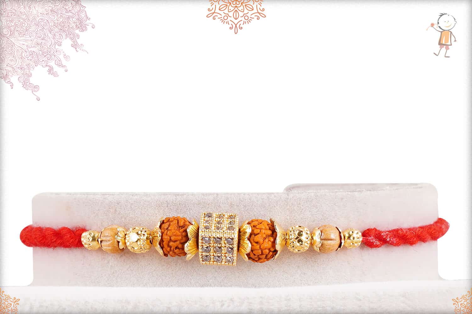 Stunning AD Rakhi with Rudraksh and Sandalwood Beads