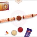 Send a Special Stunning Pearl Rakhi with Rudraksh to your brother with a heartfelt personal message. To make it more special we are giving exclusive free gifts like greeting Card, Roli-Chawal, chocolate and Bhgwan Rakhi along with this Rakhi. To make him feel special, you can customize your Rakhi combo with our add-on products and let him know how blessed you are to have him into your life.