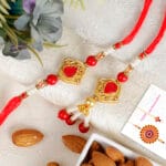 1 SET OF BHAIYA BHABHI RAKHI 1 ALMOND 50 GM 1 RAKHSHA BANDHAN WISH CARD 1 SET OF COMPLIMENTARY ROLI CHAVAL (TILAK) Important Information: This Product is only for shipping anywhere in the Europe. The user should carefully read the description of gifts, shipping declaration, and destination information before placing the order. The Product shown in the Image may vary in shape or design as per the availability. Upon receiving the edibles, immediately refrigerate them. We ship this item from London by using Royal mail Post or local Courier, Tracking number will be available. Orders received after 2:00 p.m. (UK TIME) will ship the next working day or later if things out of control. Orders received after 2:00 p.m. Friday or orders received over the weekend are processed on Monday (Unless a public holiday coincides) and a regular delivery schedule will apply. If the Recipient is not at home to receive the product, Postman/courier man may choose to leave the product at the post box, door, or leave a calling card to contact the courier company and arrange re-delivery or pickup. We are unable to call the courier company on behalf of the recipient. We use highly reputable Third party courier companies and will make every effort to deliver on time. however, occasionally delays are possible which is out of our control. We do not accept responsibility for Third party Post/Courier delays lost or damaged and the delivery charges or the products are non-refundable, even thought we have offer Free shipping. All charges have included in the final price. Please refer to our Terms & Conditions for more information.